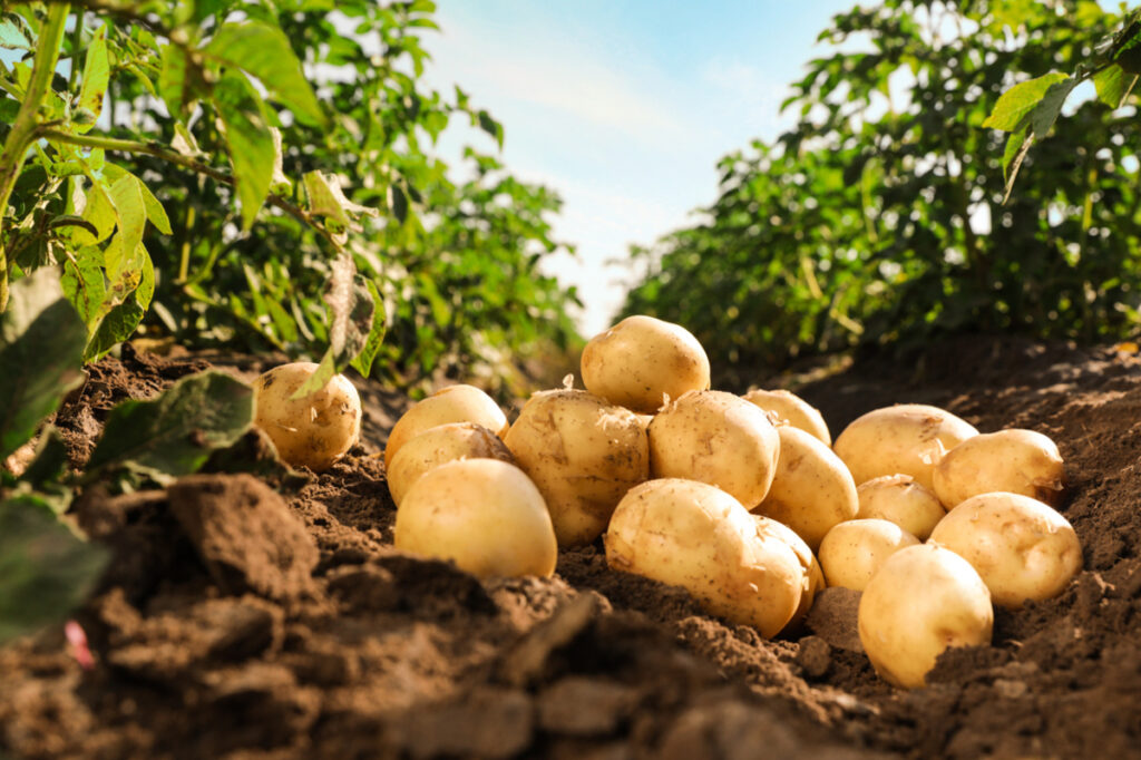 Harvested Potatoes in Field.